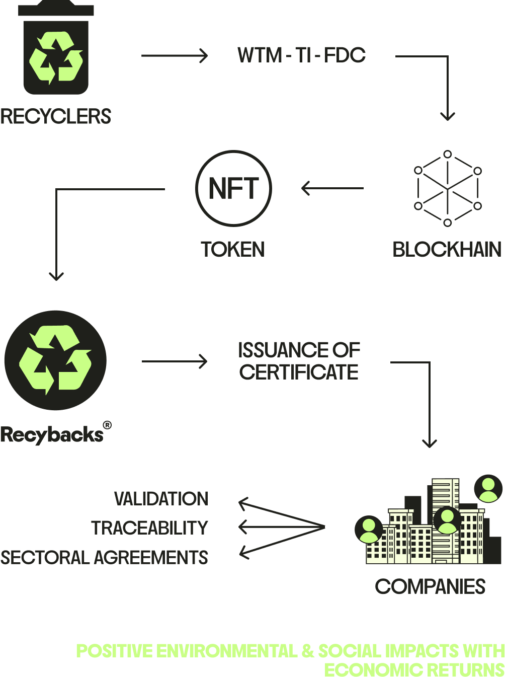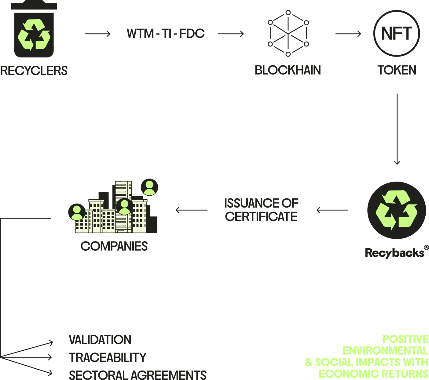 Recybacks offers a platform that enables the trading of recycling credits, ensuring traceability, transparency, and positive social and environmental impact. It provides companies with a solution to meet their recyclability targets while promoting responsible and collaborative practices across the entire waste chain.